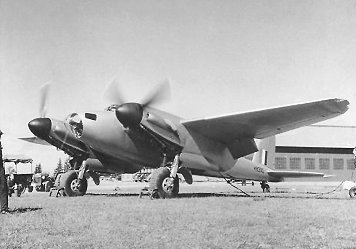Auch Nachtjäger "der anderen Feldpostnummer" erschienen ab Sommer 1944 regelmäßig über Bönninghardt. Machten manche von ihnen "nur" Luftaufnahmen (u. a. zwei in dieser Website veröffentlichte), so brachten die anderen mit sog. Störangriffen (intruder missions) Bomben und MG-Feuer über die Hei. Mindestens drei dieser "hölzernen Wunder", die für die deutschen Nachtjäger fast unerreichbar waren, fielen der Flak auf dem Platz oder in der Umgebung zum Opfer, in allen drei Fällen wurden beide Besatzungsmitglieder getötet: