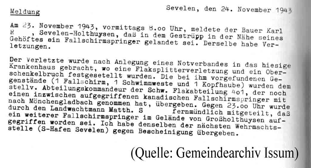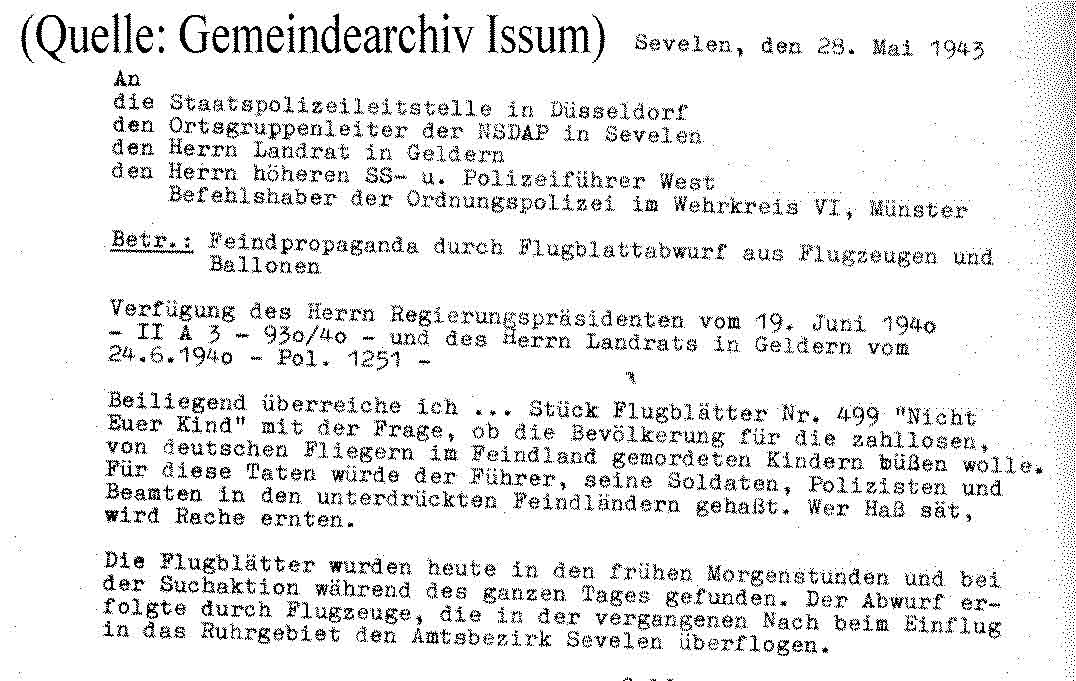 Zivilbevölkerung dar, wie ein Schreiben des damaligen Issumer Bürgermeisters an